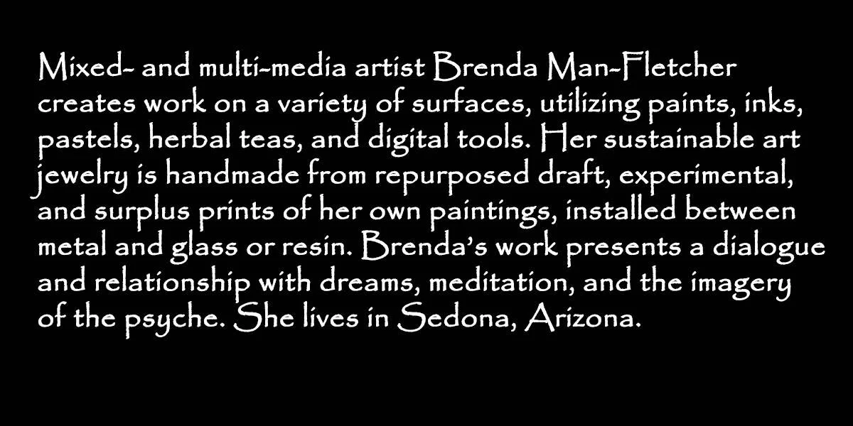 Imagery from the depths, transformed into wearable beauty. SHOP ALL PRODUCTS Mixed Media Art Prints Shop Now Sustainable Art Jewelry Made from Repurposed Art Prints Shop Now Popular Prints and Jewelry Shop Sustainable Art Pendant 2.5cmx2.5cm made from Upcycled Mixed Media Art Print - "Corner" 25-01 from $30.00 Sustainable Art Earrings 2.5cmx1cm made from Upcycled Mixed Media Art Print - "71 Peacocks" 25-06 $37.00 Sustainable Art Earrings 2.5cmx1cm made from Upcycled Mixed Media Art Print - "The Deep" 25-05 $37.00 Sustainable Art Earrings 2.5cmx1cm made from Upcycled Mixed Media Art Print - "Nereid Connections" 25-04 $37.00 Sustainable Art Earrings 2.5cmx1cm made from Upcycled Mixed Media Art Print - "Corner" 25-03 $37.00 Sustainable Art Earrings 2.5cmx1cm made from Upcycled Mixed Media Art Print - "Corner" 25-02 $37.00 2026 Mixed Media and Tea Art Calendars | 12 Piece Art Print Collection | $22.00 "Air & Water" (2022) from $15.00 Newsletter Sign up for my newsletter and download free digital art. Be the first to know about my new prints, special offers & other updates. First Name Last Name Email Address Sign Up You’re here!Thank you for signing up for my newsletter! I look forward to sharing news, updates, and behind the scenes footage on the process of making imagery into sustainable jewelry. As a token with my compliments, please CLICK HERE to download a copy of my photograph “Vortex Tree.” You can now use the downloaded image as a background or wallpaper on your device. As a newsletter subscriber, you’ll now receive each new art download I offer - absolutely FREE. Please be sure to add me to your contacts. Enjoy and have a Happy, Healthy 2025! All my best,Brenda