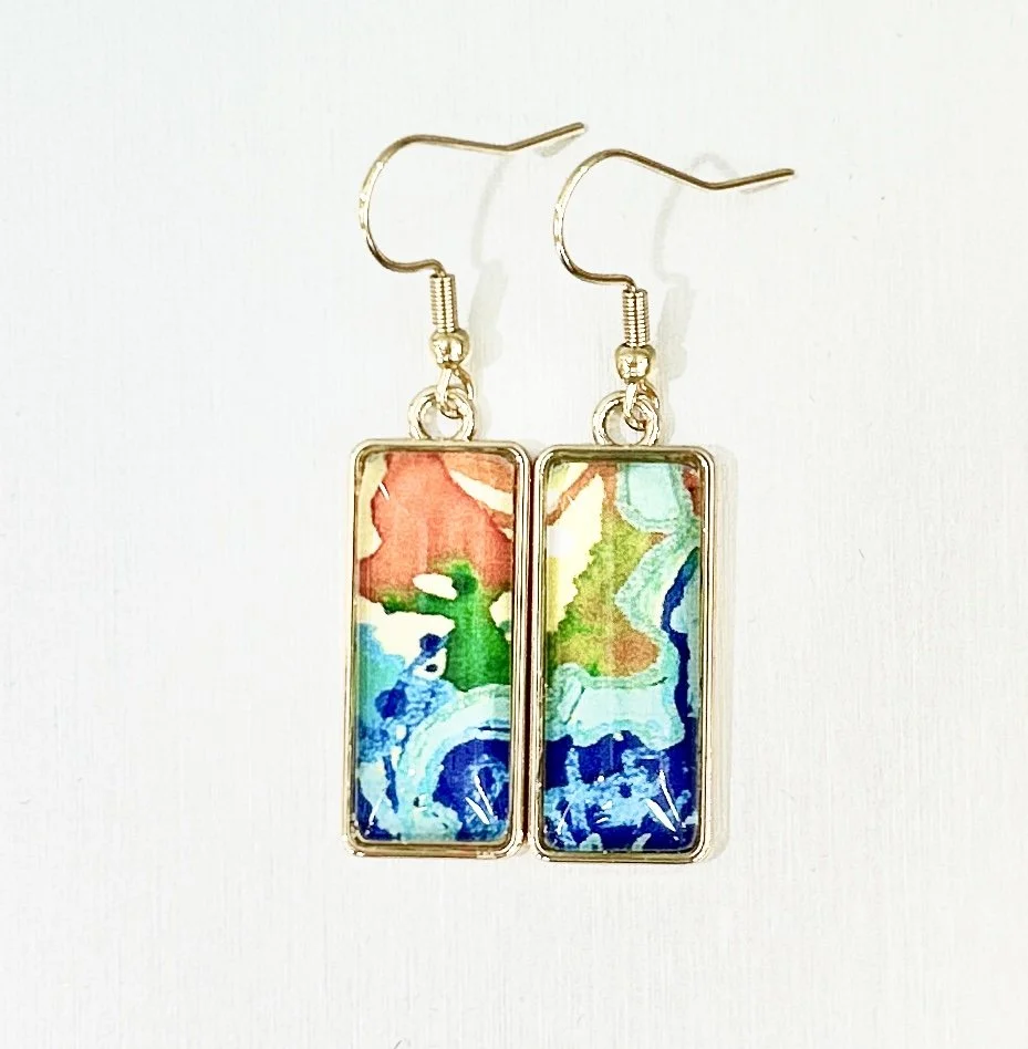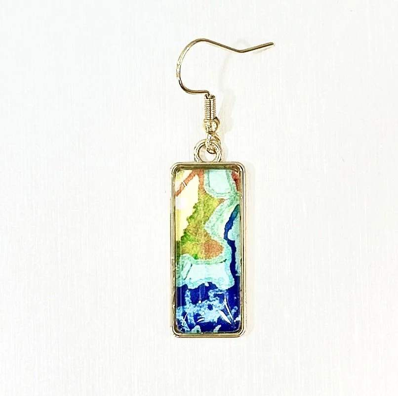 Sustainable Art Earrings 2.5cmx1cm made from Upcycled Mixed Media Art Print - "The Deep" 25-05